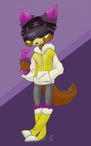 Info: sneaky and loves knowing things, media and gadget wiz, knows all the gossip that is going around, never takes her helmet off, only listens to people of her choosing, secretly an agent for RUNE (fetches info for them), loves the snow and anything orange flavored
